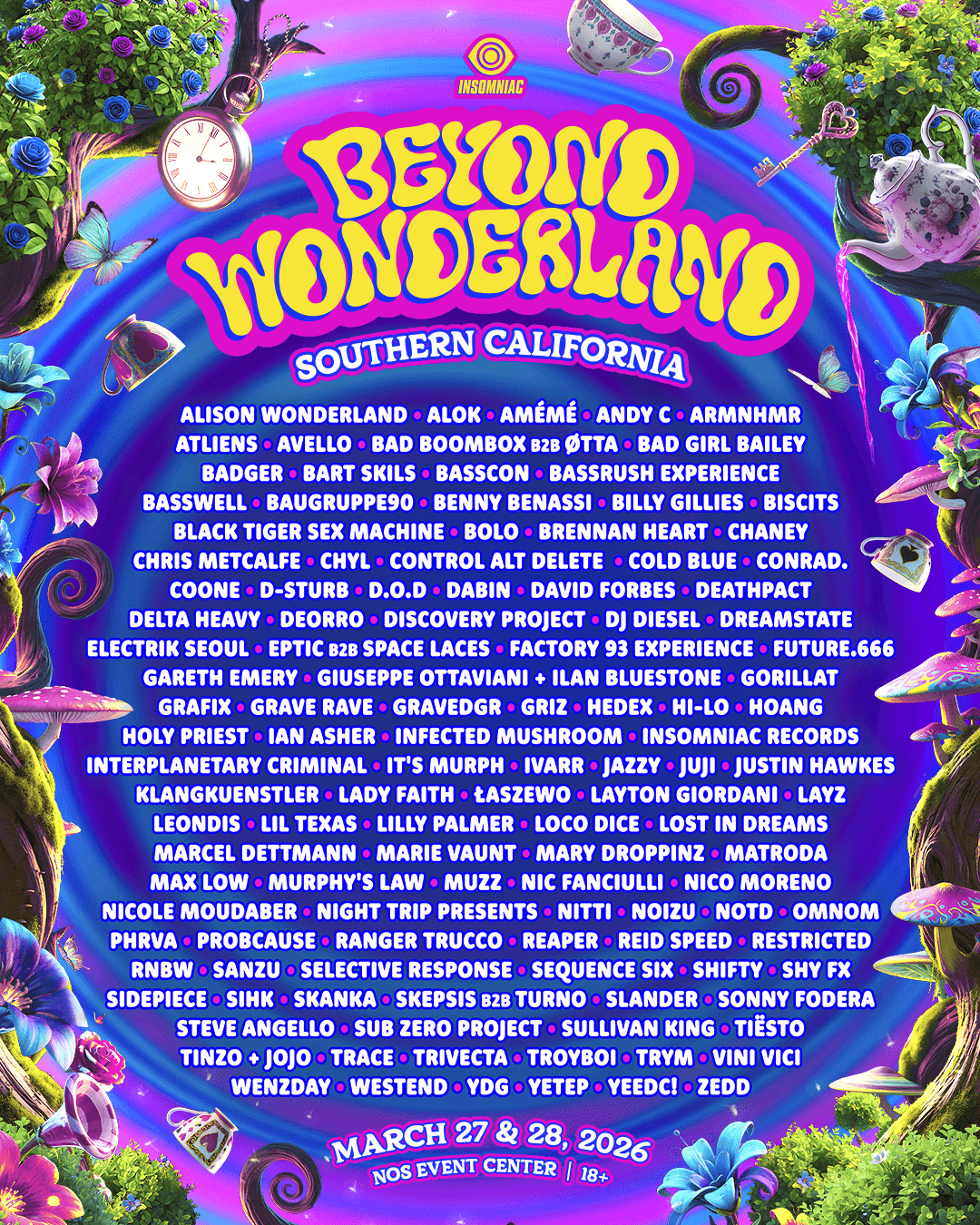SAN BERNARDINO, CA (January 6, 2026) - Today, Insomniac’s Beyond Wonderland SoCal has announced the full artist lineup for its 2026 edition in San Bernardino, CA from Friday, March 27 – Saturday, March 28 at NOS Event Center. Known for its surreal soundscapes, whimsical stage designs, and immersive storytelling, the two-day festival once again invites Headliners down the rabbit hole of world-class production and an unforgettable sonic experience.