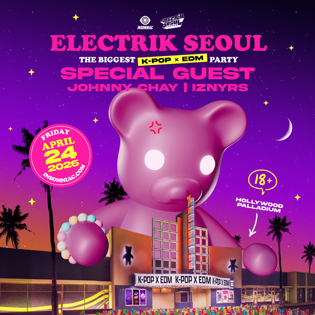 LOS ANGELES, CA - TUESDAY, MARCH 3 - Global dance music experience curator Insomniac’s brand Electrik Seoul has just announced their first-ever 18+ Friday show at Hollywood Palladium following 15 sold out nightclub shows in the Los Angeles area. Entering its second year, Electrik Seoul bridges Korean pop culture with dance music and festival nightlife, building a community around an experience-first concept.