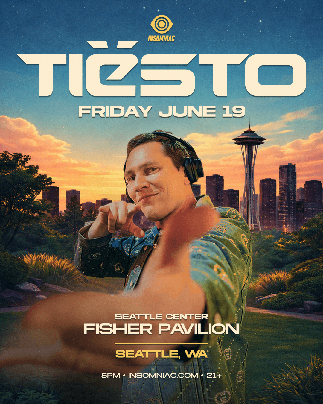 SEATTLE, WA - WEDNESDAY, APRIL 1, 2026 - The global dance music experience curator Insomniac announces today the return of legendary GRAMMY Award-winning international icon Tiësto to Seattle. This landmark headlining show at Seattle Center Fisher Pavilion on June 19, 2026, marks the platinum-certified Dutch artist’s first appearance in The Emerald City since BOO! Seattle 2023, just in time for the FIFA World Cup 2026™.